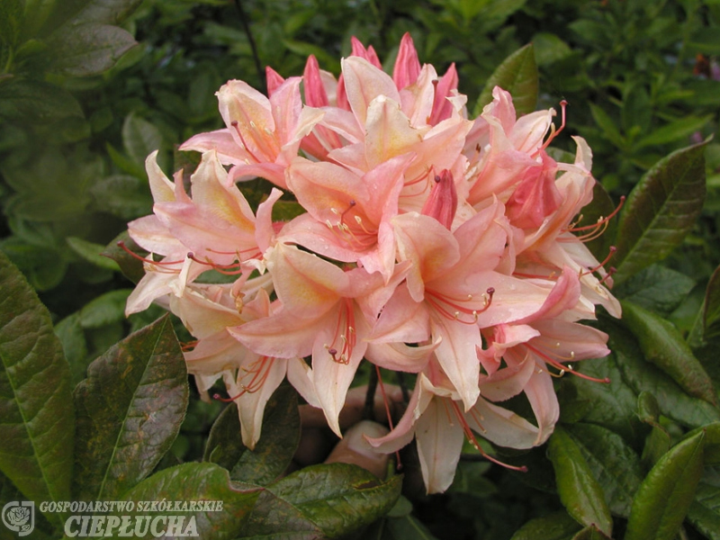 Азалия садовая крупноцветковая Chanel привнесет в сад оригинальный цвет и форму, то, зачем гонятся многие садоводы. Красивые цветы собраны в необычные шаровидные соцветия. В каждом может насчитываться до 12 бутонов. Цветки достаточно крупные до 5,5 см в диаметре, воронковидной формы с звездчатым анфасом. Не раскрывшиеся бутоны нежного розового цвета, когда цветок полностью раскрывается он становится преимущественно кремовым с различной степенью добавления розовых и желтых пятен, словно перелив перламутра жемчужной раковины. Из центра выглядывают плавные розовые нити с желтыми пыльниками. Майский расцвет будоражит сад не только новым цветом, но и новыми нотками в аромате природы, в которых чувствуется жимолость и гвоздика.