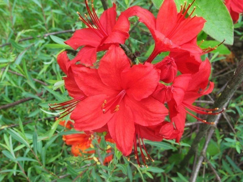 Тот майский день, который откроет первые бутоны азалии Долоросо, привнесет в сад густой цвет, насыщенный и кричащий - вишнево-красный. Никакие причуды погоды не позволят окрасу измениться даже на оттенок. В таком сочном состоянии куст пробудет не меньше месяца. Цветки крупные по 6-7 см в диаметре с длинными изогнутыми нитями, выпущенными из центра, точно в тон цветка и белыми контрастными пыльниками. Бутоны собираются в плоские или шаровидные соцветия, каждое включает в себя около 7 - 10 цветков. Удивить окружающих? Доверьте это азалии!