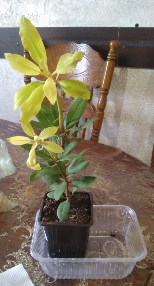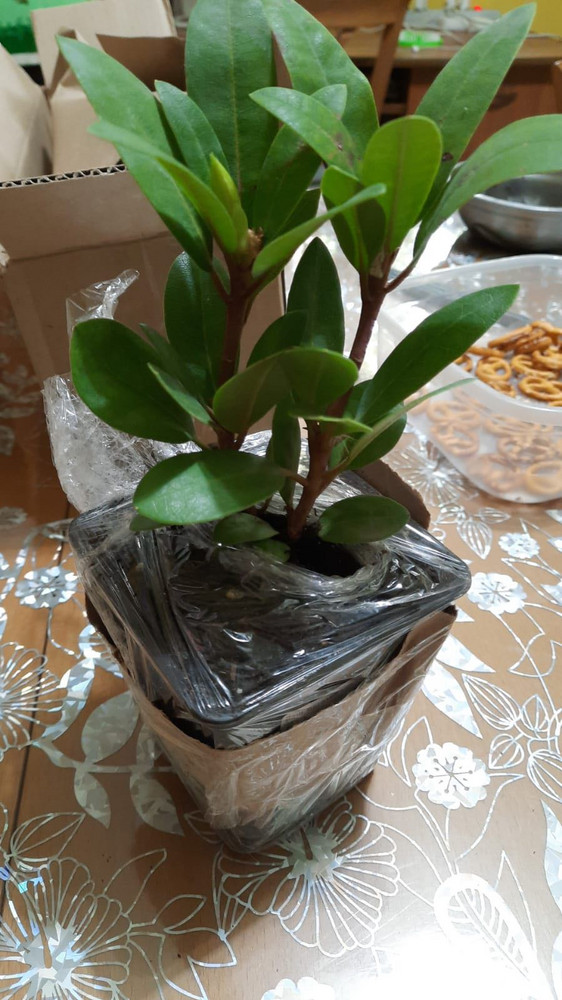 - Листва: плотная тёмно-зелёная глянцевая длинной порядка 10 см.
