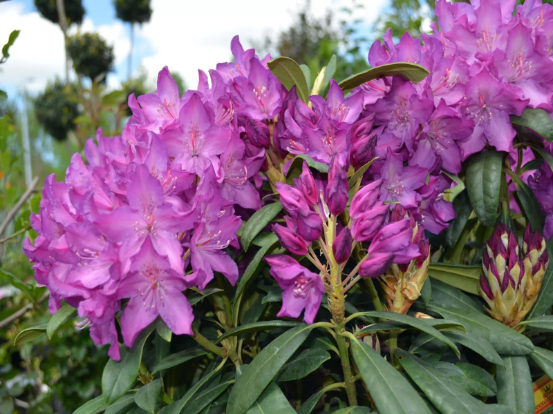 Это сильнорослый, компактный кустарник, достигающий в высоту до 1,8 метров и в ширину до 1,2 метров. Период цветения начинается в конце мая и продолжается в течение 2-3 недель. Соцветия формируются из крупных лиловых цветков с легким розоватым оттенком и контрастным крапом в центре. Цветки собраны в густые кисти по 10-12 штук, создавая объемный и насыщенный цветущий вид. Рододендрон Болеслав Храбрый отличается высокой зимостойкостью, выдерживая температуры до -32°C, что позволяет его успешно выращивать в большинстве регионов России.Применение в саду