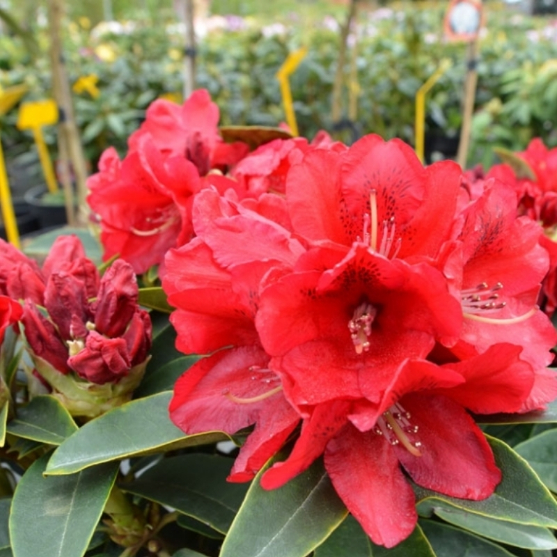 Ценный красный сорт для тех кто ищет красивый цвет без примесей. Рододендрон гибридный Брисанз (Brisanz) — это вечнозелёный кустарник, который привлекает внимание своими яркими красными цветками и компактной подушковидной формой.