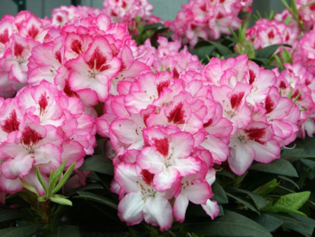 Рододендрон Черри Чизкейк (Cherry Cheesecake) — уникальный и яркий сорт, который привлекает внимание своими двухцветными цветами, напоминающими слои вишневого чизкейка. Улучшеный вариант своего родителя Hachmann's Charmant менее высокий и более крепкий.