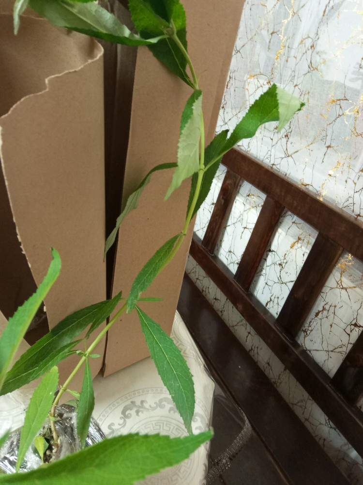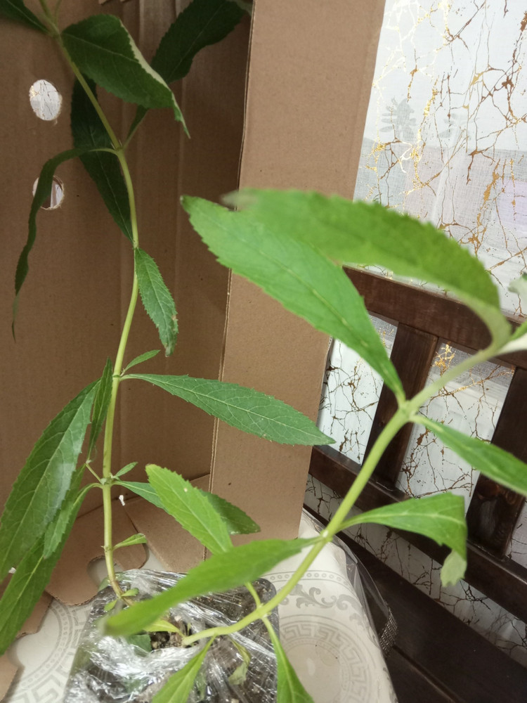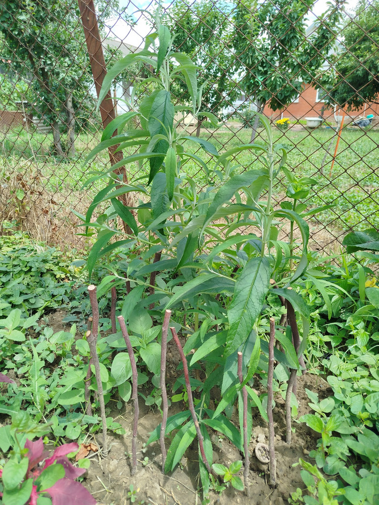 Высота куста достигает 2 м. Утолщенные крепкие стебли имеют поникающие верхушки. Форма кроны плотная, округлая или широкораскидистая. Ее формируют достаточно крупные ланцетные заостренные листья. Сверху они темно-зеленого-цвета, нижняя сторона намного светлее и покрыта волосками. Корни располагаются близко к поверхности грунта. Поэтому нужно быть аккуратными при рыхлении и мульчировании.