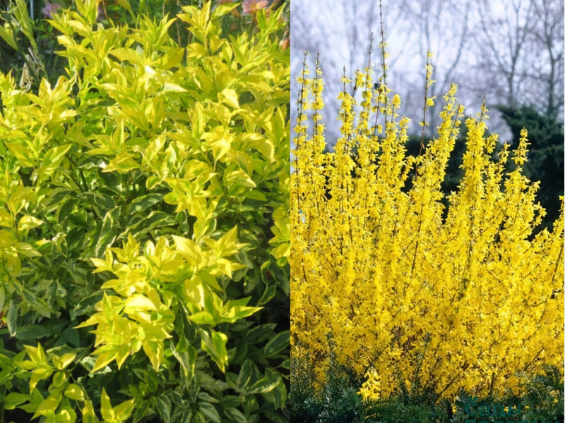 Совет — форзиция очень выигрышно смотрится в сочетании с рододендроном, барбарисом, кольвикцией или вейгелой, эти растения прекрасно уживаются и дополняют друг друга.