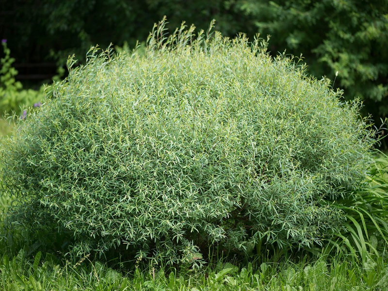 Ива шаровидная карликовая Нана низкорослый вид среди прочих сортов, достигающих 20 м, она вырастает максимум на 120 см. Диаметр кроны, как правило, не превышает 150 см.