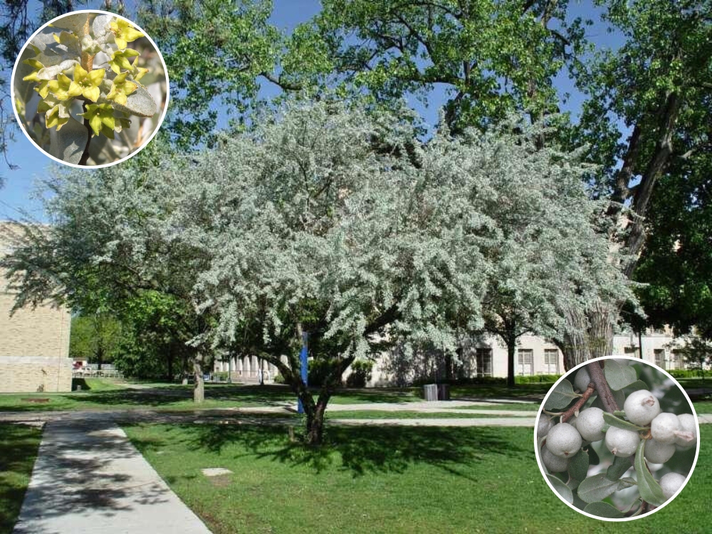Лох серебристый (Elaeagnus commutata) - это удивительное по всем параметрам дерево. Оно растет там, где другие не могут: на солончаках, в жарких засушливых регионах, где солнце сжигает всю растительность, он не реагирует на загазованность города, да и крайне бедные земли он вполне озеленяет. К тому же, что ОЧЕНЬ ВАЖНО, лох серебристый, так же как и бобовые, способен фиксировать азот. А это значит, что земли и растущие рядом растения обогащаются этим элементом. Даже были исследования, которые говорят о том, что урожайность растений, соседствующих с лохом, увеличивается на 10%. Так что с уверенностью можно сказать что это дерево крайне полезное. Растение можно выращивать деревом до 4 м, но также и высокорослым кустарником. Последние подтверждаемся обильной корневой порослью, которую придётся удалять.
