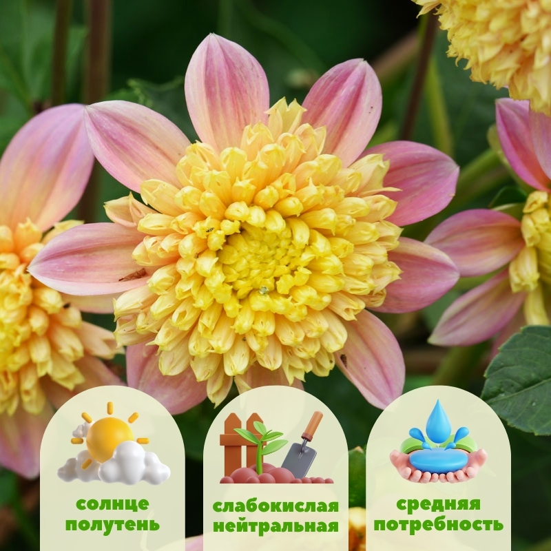 Немного румянца, щедрая горсть солнца, побольше сочной зелени и вуаля - не простая, а анемоновидная георгина Хани (Honey) готова! Это очень романтичная бордюрная георгина, которая призвана делать атмосферу в саду легкой и теплой. Отлично подойдет тем, кто устал от кричащих красок.