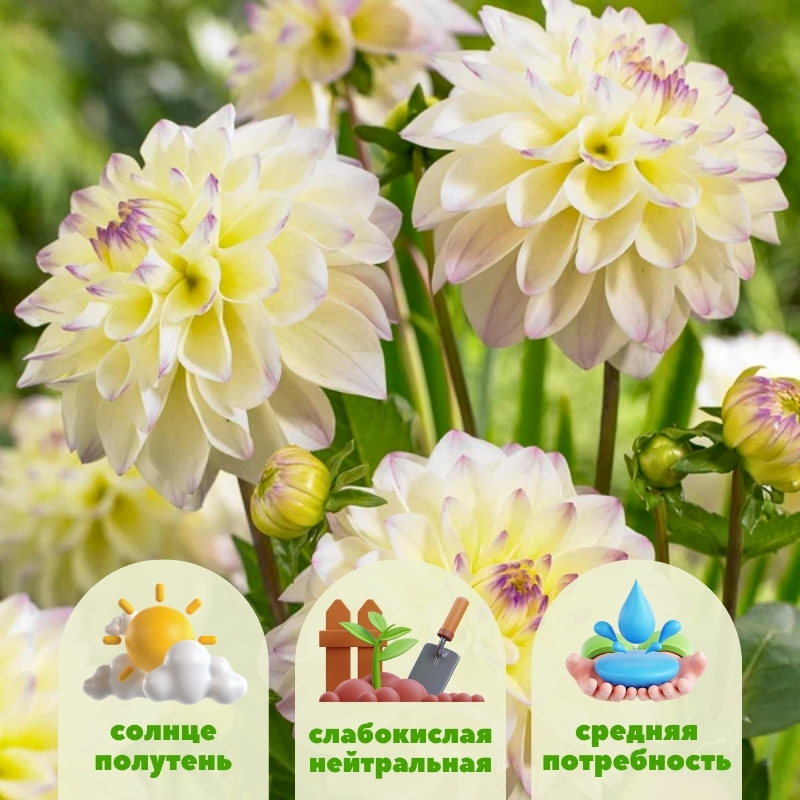 Благодаря спокойной цветовой гамме dahlia Lake Carey гармонирует со всеми цветовыми комбинациями, начиная от зелёного фона вечнозеленых растений и заканчивая целым спектром красок летне-осенних цветов. Сочетайте её с лилейниками, эхинацеями или флоксами, для контраста используйте хосты, гейхеры или злаки. Карликовая георгина подходит для создания колоритных бордюров, акцентных линий и переднего плана клумб, а также эффектно смотрится в контейнерах и вазонах на террасах или балконах.Посадка георгин Лейк Кери и уход за ней: