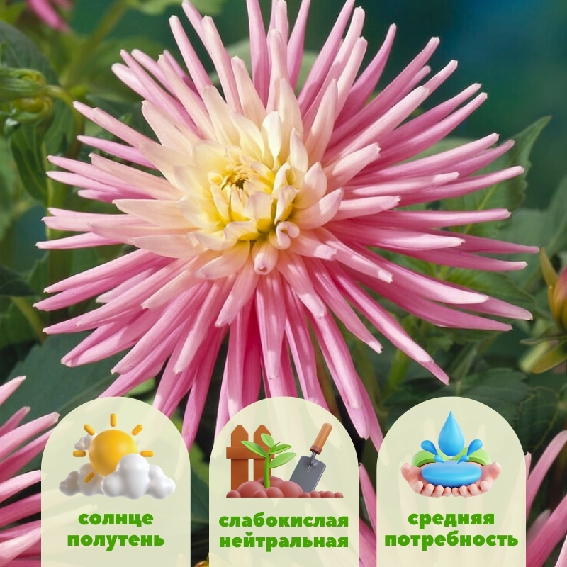 Кто сможет обеспечить непрерывный розовый цвет в вашем саду? Правильно - кактусовая георгина Парк Принцесс (Park Princess). Её главные достоинства: длительное цветение, роскошные игольчатые цветки и компактный плотный куст, который не разваливается и не роняет головы цветов даже во время дождя!