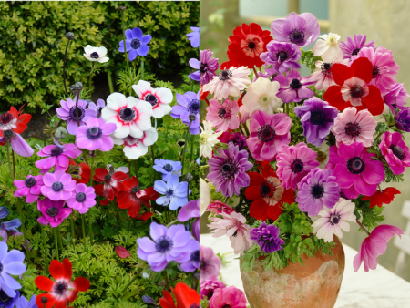 Anemone coronaria De Caen Mixed - сочное украшение кашпо! Украсьте цветами веранду или балкон. Благодаря своей яркой палитре, анемоны Де Кайен смесь создают эффектные комбинации с зелеными и серебристыми лиственными растениями, такими как хоста, полынь и чистец. Будут на одной высоте с рудбеккией и эхинацеей, а в тандеме со злаками примут воздушную форму.