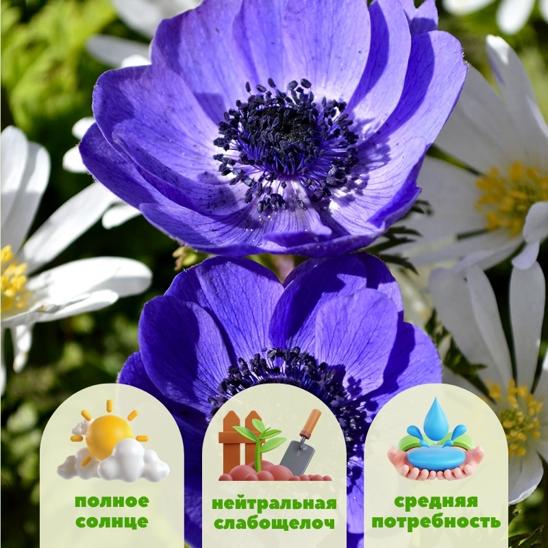 Анемоны неприхотливы, предпочитают расти на рыхлой и плодородной почве, на солнце или в полутени. За пару лет одно растение так разрастается, что занимает площадь не менее квадратного метра, это необходимо учитывать при посадке. На зиму корневища выкапывают, либо укрывают слоем 10-15 см. Для зимнего хранения клубни выкапывают после отмирания листьев и содержат в сухом субстрате: до зимы при температуре 15-20°С, а затем до весны – при 2-5°С. Эти условия ограничивают рост стеблей. Растения высаживают в апреле-мае или сентябре-октябре на глубину 5 см, на расстоянии 10-15 см друг от друга. Размножают анемону делением корневищ и клубней, корневыми отпрысками, семенами. Анемоны долго адаптируются на новом месте, но после того, как растение приживется, оно украсит сад на многие годы.Доставка ветреницы Мистер Фоккер осуществляется с помощью услуг почты России или курьерскими службами.