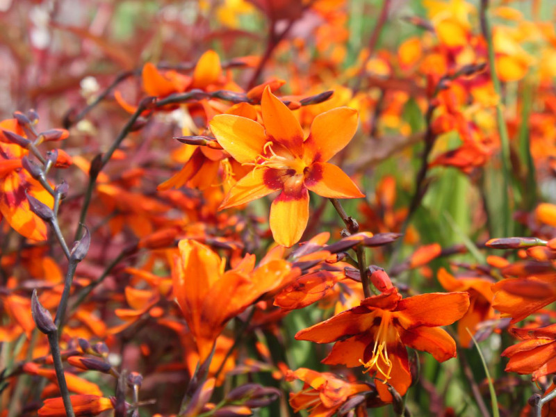 Возможно Вас не удивит буйство зелени крокосмии Emily McKenzie (Эмили Маккензи) весной, но уж её летнее цветение не ставит Вас равнодушным. Экзотичное растение из семейства ирисовых, так прочно вошло в нашу жизнь, что редкий флорист не использует его в декоративных целях.