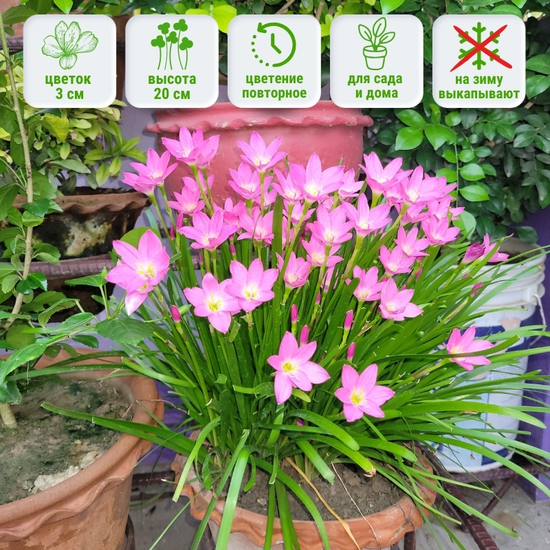 Зефирантес розовый — это эффектный луковичный многолетник из семейства амариллисовых, который поражает своей способностью внезапно «выстреливать» цветами после обильного полива или дождя. От посадки до цветения первые цветки могут появиться уже через 10-14 дней! Благодаря этому его поэтично называют «выскочка» или «дождевой лилей».
