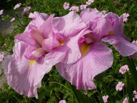 Ирис Момогасуми относится к японским сортам, класс корневищные многолетники. Слово Ensata в переводе означает японский водяной рис. Светло-розовый цвет лепестков замечательно сочетается с ярко-желтыми мазками в центре, а удивительная форма лепестков и их необычное расположение делает этот цветок уникальным, не похожим на другие. Зацветает ирис Momogasumi ранее, чем остальные сорта, начиная с апреля, он цветет до самого мая, радуя вас своей роскошью и насыщенным ароматом. Размер цветка в диаметре около 17 см. Высота куста ириса сорта Momogasumi достигает 75 см. Красивый раскидистый куст с мечевидными суженными к концу светло-зелеными листьями великолепно смотрится на клумбах вдоль тротуаров. Предпочитает солнечные безветренные места с хорошо удобренной и слабокислотной почвой. Любит обильный полив, хорошо растет в групповых композициях.