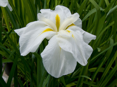 Ваш сад непременно оживится в период роспуска прекрасных ирисов Вайт Лэдиз в период с июня по июль. Сочной зелени куст наградит Вас пышными крупными цветками до 20 см в диаметре! Нарядные двурядные цветки сияющего белого света с освежающей салатово-горчичной полоской вдоль лепестков. Нижний ряд состоит из 6 шт крупных, изящно отгибающихся лепестков, а верхний из замысловато задирающихся к верху околоцветий. Стебли возвышаются на высоту 60-80 см, имеют густую, ярко-зелёную узкую листву, которая сохраняет свой красочный свежий вид до самых заморозков. Ирисы сорта White Ladies будут привлекательно смотреться у речной глади, зеркально отражаясь в ней.