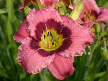 Лилейник Always Afternoon зацветает в июле на 35-45 дней, преобразуя все вокруг своими необычными цветами. Лилейник этого сорта образует крупные, мясистые, слегка гофрированные розово-пурпурные цветы с темно-сливовым глазом и лимонным горлом. На возвышающихся цветоносах распускается одновременно 1-3 цветка диаметром до 14см.