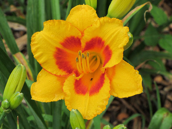 Для посадки лилейника выкапывают лунку до 20-30 см глубиной, заполняют ее торфом или перегноем, добавляют фосфорно-калийные удобрения и высаживают деленку. Место посадки нужно обязательно хорошо утрамбовывать и пролить, чтобы обеспечить высокую приживаемость. Корни лилейника при посадке сильно не заглубляют, достаточно 3-5 см. Место посадки мульчируют листьями или древесной корой. Зимуют лилейники в любом регионе, для их укрытия подойдет небольшой слой мульчирования, а выпавший снег доделает остальное.