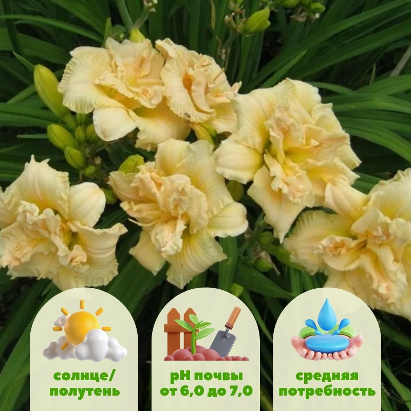 Да, лилейники отзываются на подкормку, но если у вас плодородная почва, то вам ничего не потребуются делать для того, чтобы они расцвели в предстоящем сезоне. Так и с лилейником Боул Оф Крим - это настоящая находка! Данная ”чашка со сливками” (перевод с англ.), представляет собой массивный многолетник с линейной прикорневой листвой высотой около 45-70 см. На нем в летний период формируются махровые кремово-белые бутоны с едва заметным жёлто-зеленым зевом и легким источаемым ароматом. Диаметр цветка достигает примерно 13-14 см. Цветение приходится на июль, при хороших условиях повторяется в августе. Зимостойкость до -35 °C.Универсальность использования в саду
