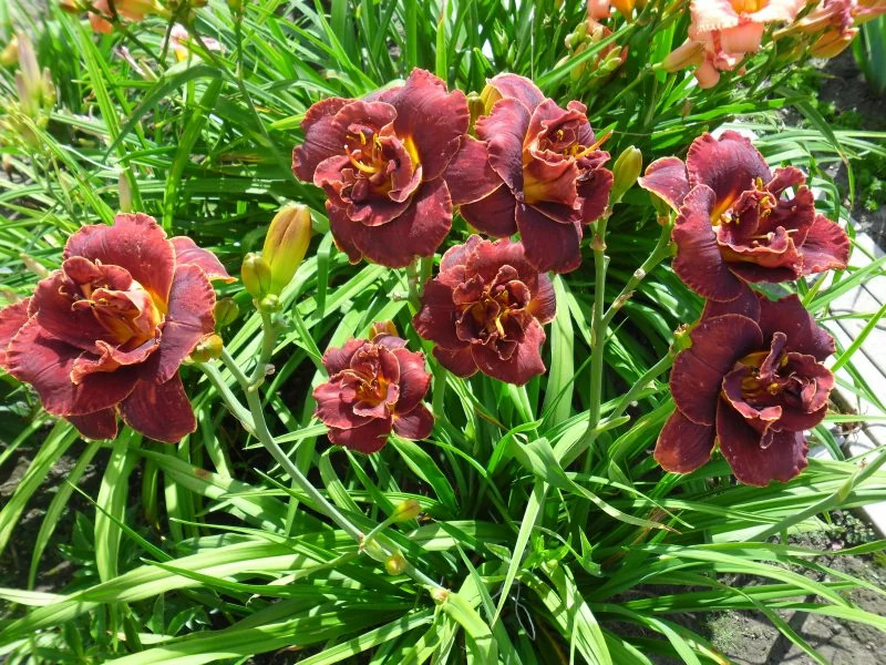 Максимально эффектен лилейник Бургунди Лав в период массового расцвета, и пусть продолжительность жизни цветка не более одного дня, количество раскрываемых изо дня в день новых бутонов оставляют незамеченным данный факт. Как правило, первые бутоны начинают появляться в июне и продолжают цвести в течении месяца. Цветок лилейника Burgundy Love обладает роскошным терпким винным цветом, по структуре махровый с ярко-жёлтым горлышком и тычинками, достаточно крупный, так диаметр около 15 см.Не меньшую привлекательность носит куст, который состоит из мечевидной листвы, очень густой. Всего высотой лилейник Бургунди Лав 45-55 см, потому разместить Вы его сможете с любыми декоративными многолетниками, на фоне ярких гладиолусов или же среди вечнозелёных можжевельников. |