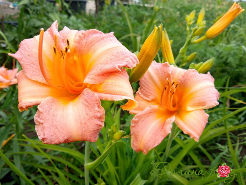 Стоит раз увидеть лилейник Чилдрен Фестивал в цветении, как Вы станете его поклонником на всю жизнь. Многочисленные цветочки уже раскрывшиеся и ещё в бутонах массово заполняют куст, состоящий из длинных ланцетных листьев дугообразно изгибающихся под своим весом. Цветки необычного пудрово-сиреневого цвета с лососевым оттенком и ярким оранжевым горлом. Цветение наступает в июне с продолжительностью в 3-4 недели, в этот период появляются цветки по 11-15 см в диаметре. Зелёный куст хорошо разрастается в ширину, а в высоту не превышает 50 см.