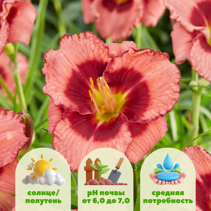 В дизайне сада daylily Dan Mahony идеально подходит для создания акцентных групп в миксбордерах и вдоль дорожек. Он эффектно смотрится рядом с декоративными злаками, флоксами, ирисами и хостами, подчеркивая их листву своими яркими тонами. Благодаря своей устойчивости и выразительности сорт часто используют в садах естественного стиля, коттеджных и парадных композициях — там, где нужен цветовой акцент, который будет радовать без особого ухода.Рекомендации по посадке и уходу: