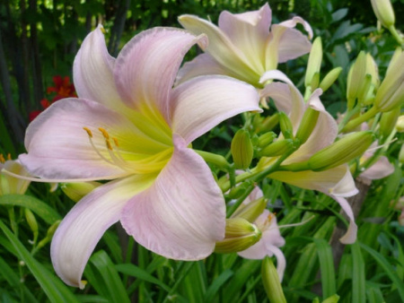 Посадите корни лилейника Катерина Вудбери в компании с другими сортами, особенно чисто-желтыми и розовыми, и такое сочетание будет радовать Вас многоцветьем, на смену которому могут прийти в августе-сентябре размещенные рядом георгины и хризантемы.