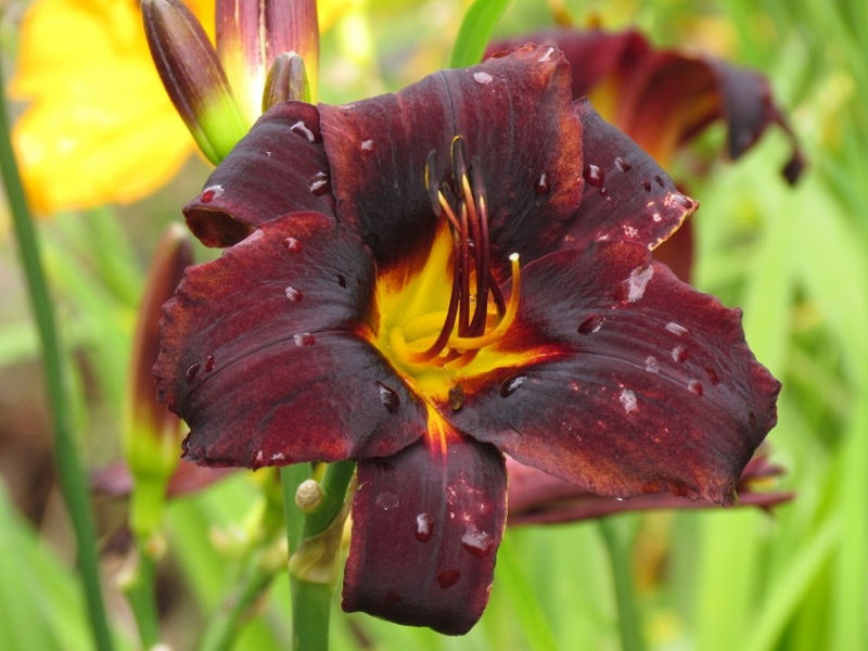 Тёмной бархатной мантией покрыты кусты по-королевски роскошного лилейника Sweet Hot Chocolate (Свит Хот Чоколат). Глубокий цвет, сравнимый только с багровым закатом, чарующей силой невольно притягивает взор.