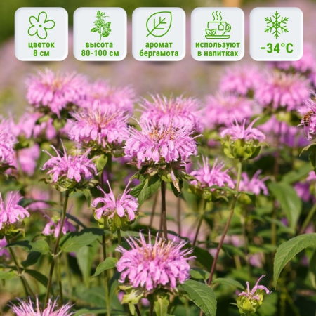 Её нежные розовые соцветия, похожие на воздушные облачка, кажутся парящими над зелёной листвой, придавая пространству лёгкость и очарование. Пряно-свежий аромат растения наполняет воздух тонкими нотками мяты и цитруса, создавая атмосферу расслабления и гармонии. Цветение с июля по август. Вырастает до 70–90 см в высоту, образуя плотные кусты с прямостоячими стеблями. Листва насыщенно-зелёная, с мягкой текстурой, сохраняет декоративность весь сезон. Это зимостойкая культура, подходящая для зоны 4 (до -34 °C).Универсальность в саду