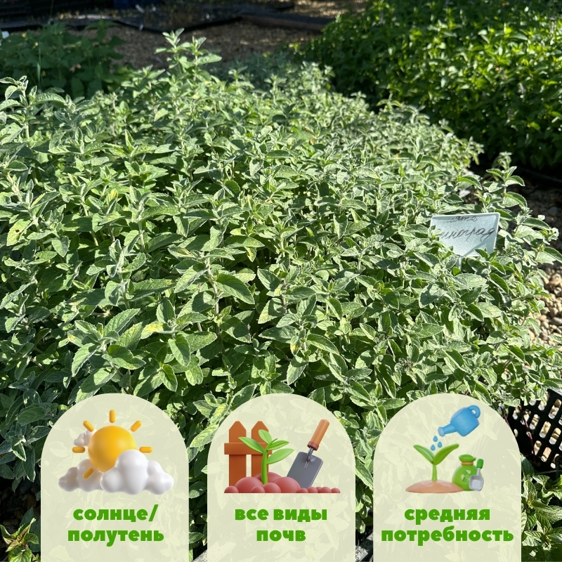 Мята Белый виноград универсальна в посадках, она отлично смотрится:- в ”кулинарной” грядке рядом с тмином, базиликом, орегано,