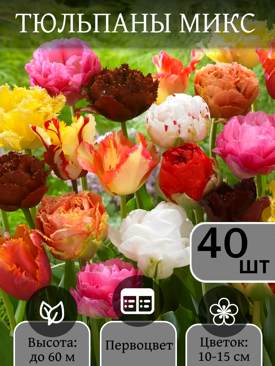 В этой смеси вы найдёте как классические красные, так и нежные пастельные оттенки, а также яркие пестрые расцветки и насыщенные цвета, которые будут радовать вас своей красотой каждую весну. Разнообразие форм цветов — от классических бокаловидных до более экзотических попугайных и оригинальных махровых или бахромчатых — позволит создать уникальные композиции и добавить изюминку в ваш ландшафтный дизайн.