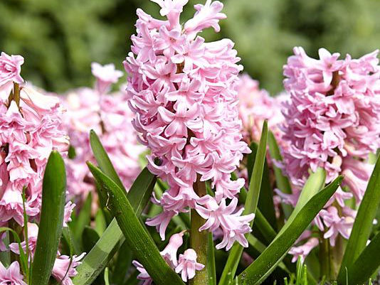 Выкапывать луковицы рекомендуется после пожелтения листьев. Если луковицы не выкапывать, то на следующий год они цвести будут хуже. Сразу после выкопки луковицы просушивают 5-7 дней при 20° в затемненном проветриваемом помещении, очищают от земли и остатков. На первой стадии луковицы содержат не менее 2 месяцев при 25-26°, а на второй -1 месяц при 17°. Высаживают гиацинты в период с сентября по ноябрь в зависимости от климатических особенностей региона выращивания. Расстояние между луковицами в ряду 15-20 см, глубина посадки 12-15 см, в зависимости от размера луковицы. Размножение гиацинта происходит луковицами-детками осенью. С наступлением устойчивых холодов желательно укрыть гиацинты. Для этого можно использовать такие мульчирующие материалы, как сухой торф, перегной, опилки, а также сухую опавшую листву, а весной, как только почва начнет оттаивать, укрытие нужно осторожно снять, так как ростки у гиацинтов появляются очень рано.