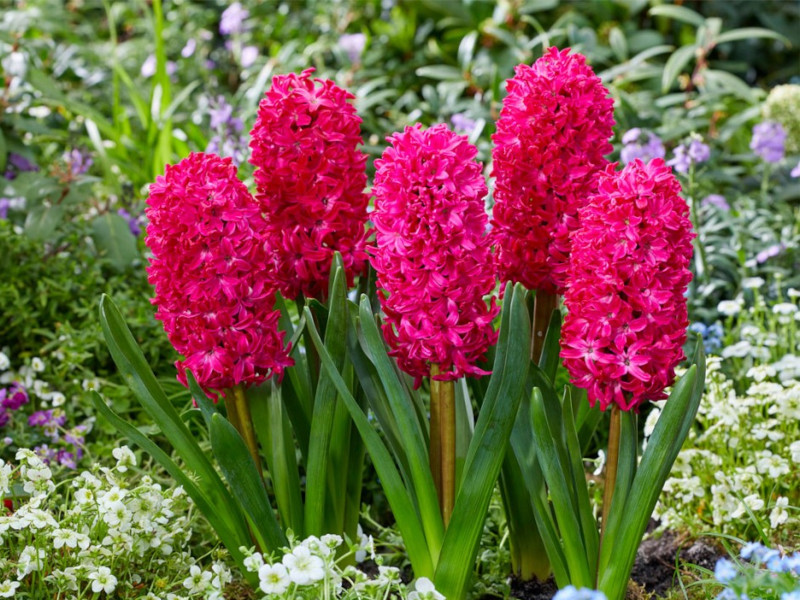 | Гиацинты Ян Бос просто созданы для того, чтобы наполнить Ваш сад бурлящей энергией, источающей яркие краски и благоухающий аромат. Лучше всего использовать их кантом для солнечного императорского рябчика, расположенного в дуэте с фиолетовыми тюльпанами. При создании подобной композиции Вам понадобится от 3 до 5 шт рябчиков, 10-15 шт луковиц тюльпанов и около 30 шт гиацинтов Jan Bos, которые станут ярким завершением цветочного дизайна. |