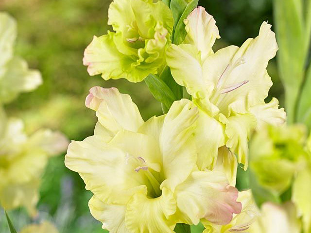Цветочные гурманы очень любят этот цветок. Невзирая на то, что зелёного цвета гладиолусы уже не редкость, данный сорт всё-равно в предпочтении. Возможно это из-за сочности салатовых гофрированных лепестков, край которых сияет розовым румянцем. Гладиолус Alicia цветёт во второй половине лета к августу, в соцветии одновременно распускается до 10 шт цветков диаметром не менее 11 см.