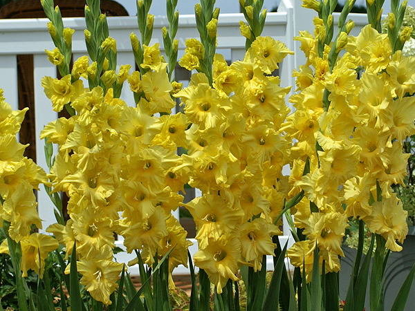 Высаживайте гладиолус Джексонвилл Голд в цветники рядом с синими и фиолетовыми сортами – это роскошное сочетание, как на клумбе, так и в букете.