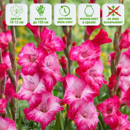 Gladiolus Cantate — универсальный гладиолус, который можно использовать как самостоятельный акцент на клумбе, так и элемент сложной цветочной композиции. Он отлично подходит для:- фоновых посадок за невысокими многолетниками — цветонос создаёт объём, высоту и визуальный баланс;