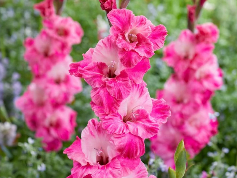 Gladiolus Hugo идеально подходит для создания романтичных клумб и миксбордеров. Его розовые цветы прекрасно сочетаются с белыми, лавандовыми и голубыми растениями, формируя нежные композиции. Он великолепно смотрится как в групповых посадках, так и в качестве акцента в букетах, принося в дом свежесть летнего сада.Рекомендации по посадке и уходу за гладиолусом: