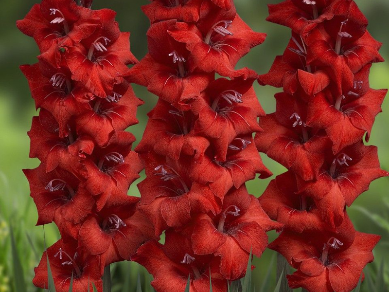 Гладиолус Oscar(Оскар) — насыщенно-красный, бархатистый сорт с большими треугольной формы цветами привлекает к себе внимание и просто отказывается отпускать от себя ваш взгляд.