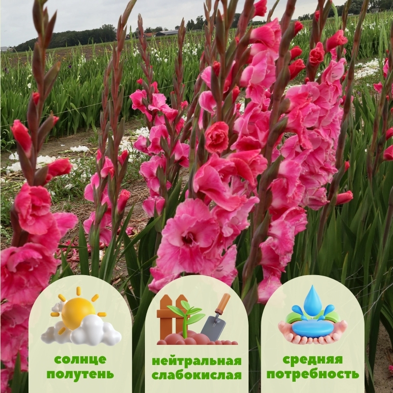 Gladiolus Pink Event прекрасен как самостоятельное украшение клумбы: группа из 7-10 шт способны оживить даже небольшой уголок. Он отлично смотрится в фоновых посадках за невысокими цветами или декоративной зеленью, создавая не только высоту, но и вознося цвет практически на уровень глаз. Его мягкий розовый цвет приносит мягкость и гармонию в композиции с котовником, шалфеем, розами и лилиями. Для тех, кто любит свежие букеты в доме — это удачный выбор, его срезанные цветоносы долго сохраняют свежесть и украшают интерьер.Посадка гладиолусов Пинк Эвент и уход за ним: