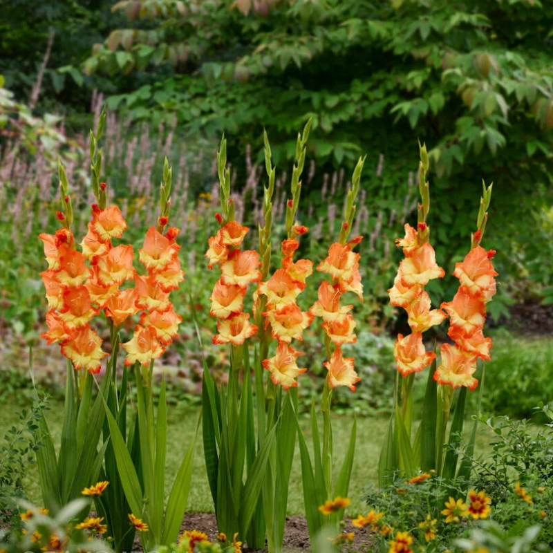Гладиолус Принцесса Маргарет Роуз – действительно королевский цветок! Огненно-желтые цветы с красными краями словно пламя разбавит ваш цветник яркими красками.