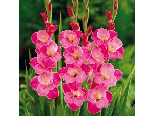 Фактурные, выразительные, как будто нарисованные цветки, которые появляются из стрелки гладиолуса Sylvanna, показывают нам, что главный творец – это природа, способная создавать потрясающие произведения своего искусства, конечно, с помощью талантливых селекционеров и садоводов. Гладиолус Сильвана выше среднего роста – 130-140 см, и цветки велики даже для крупноцветковых сортов – до 17-19 см. В соцветии они располагаются свободно, в один ряд. У внутренних лепестков околоцветника цвет у основания желтый, по краям румяно-розовый. У внешних - насыщенный малиново-розовый. Высаживайте луковицы гладиолуса Sylvanna среди пышной зелени, чтобы добавить к ней теплые нотки. В срезке этот сорт изумительно хорош без всяких добавок.