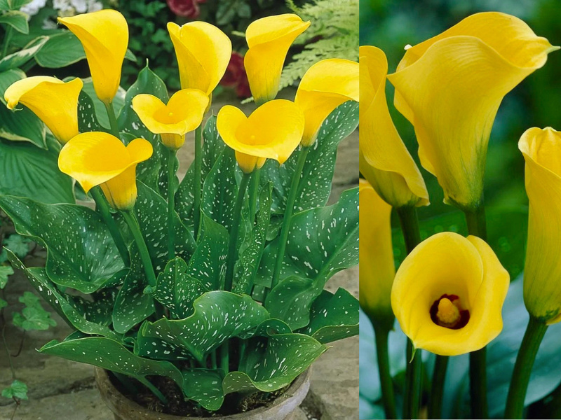 Zantedeschia Best Gold позволяет нам наслаждаться ей также до цветения и после. Эту возможность предоставляют нарядные листья крупные и широкие стойкого зеленого цвета и белого крапа.