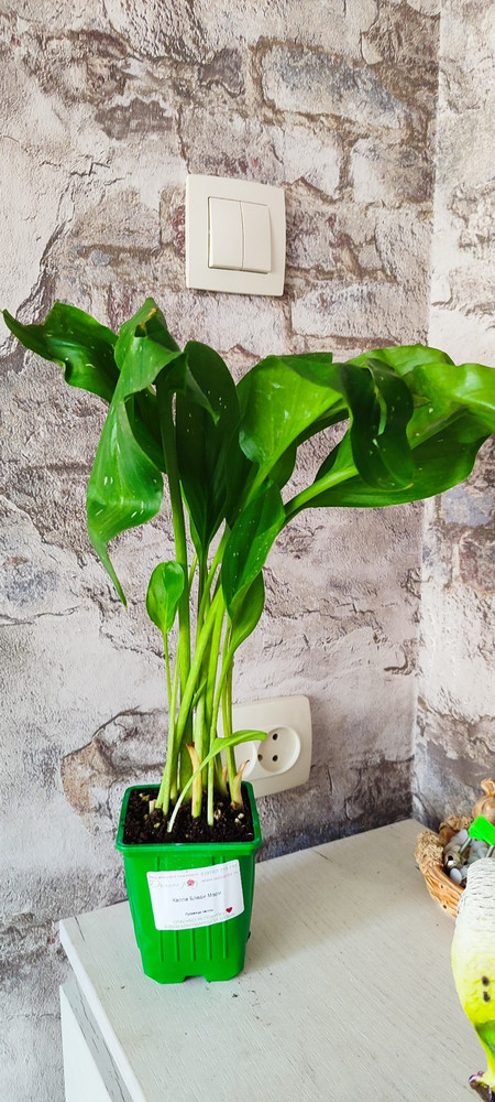 Высота растения, на котором распускаются эти невероятные цветки, около 40-50 см. Изящные листья широкие, блестящие с выразительной волной по краю, приятного зеленого цвета с небольшим количеством белых вкраплений.