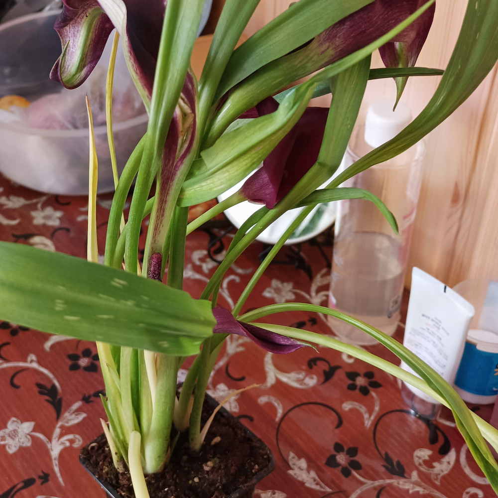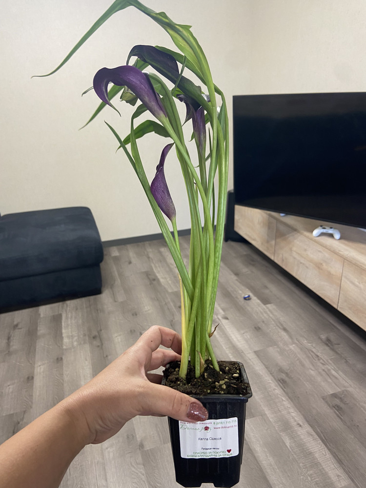 Высота восхитительной садовой черной каллы Одесса достигает 50-60 см, с темно-зелеными будто восковыми листьями, на которых расположен редкий крупный крап. В срезке цветоносы очень устойчивы, сохраняют первозданную свежесть в течении 5-7 дней, поэтому любимы цветоводами-профессионалами и увлеченными садоводами. А в природе цветок сохраняет свою декоративность до 1,5 месяцев. Широко используется для срезки и озеленения, так и для горшечного выращивания.
