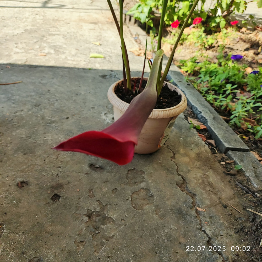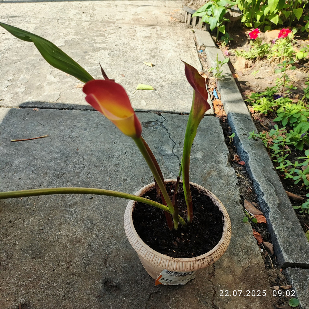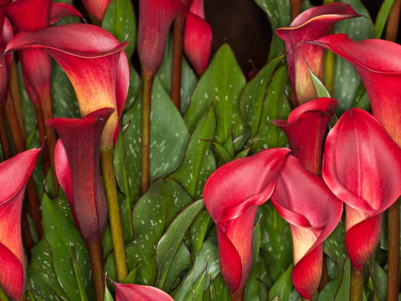 Живое пламя в вашем саду - калла Ред Чарм (Red Charm). Её насыщенные кроваво-красные цветы удивят вас своей стойкостью и на клумбе, и в вазе.