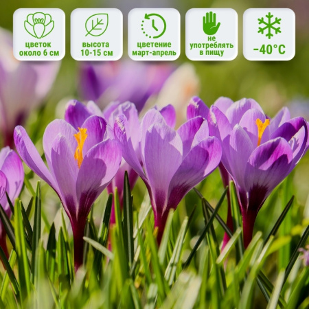 Очаровательный крокус Барс Парпл расцветает в период с марта по апрель, образуя крупные бокалы нежно-сиреневого оттенка с прелестной ярко-желтой тычинкой, что придает цветку особенную изюминку, а исходящий нежный аромат зарядит вас настроением на целый день. Продолжительность цветения 7-8 дней, сохраняя свою декоративность и первозданную свежесть. Высота крокуса Barr's Purple достигает 10-15 см с темно-зелеными прикорневыми, узкими листьями темно-зеленого оттенка. Великолепно смотрится на весеннем газоне, на передних планах клумб, рабатках, альпийских горках.