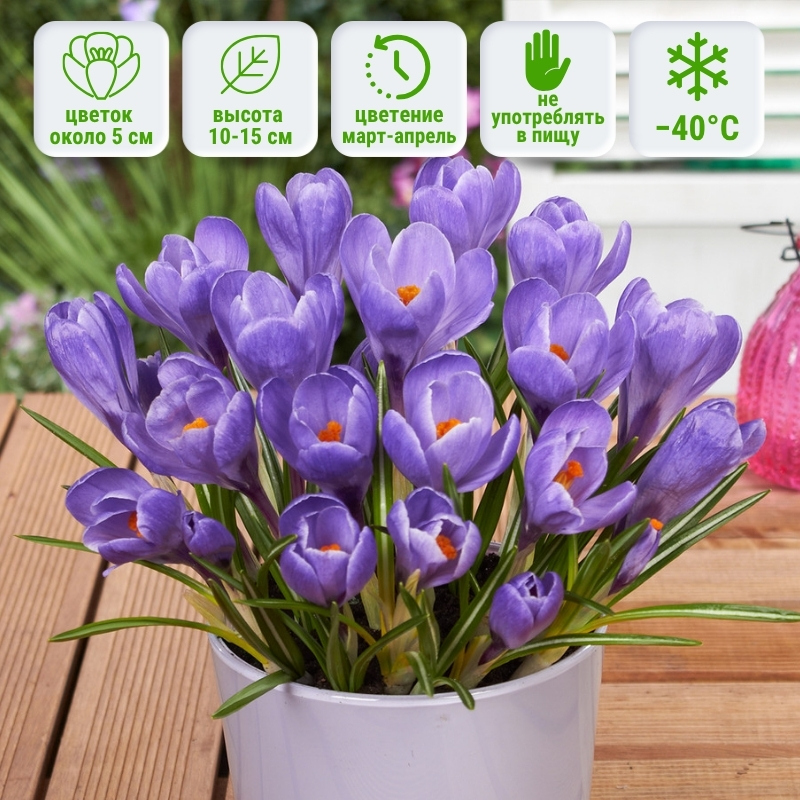 В продаже только профессиональные серии посадочного материала, которые будут гарантированно нужного вам сорта, отличного качества и высокой жизнеспособности. Цена на крокусы указана за упаковку.