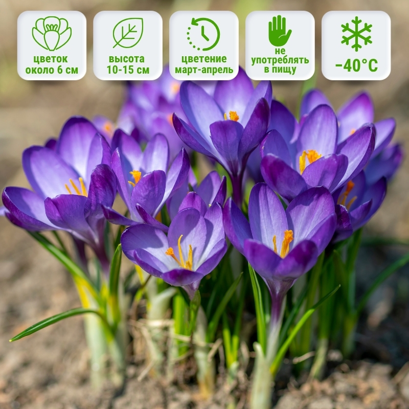 Ботанические крокусы Ruby Giant (Руби Гиант) прекрасные цветы, напоминающие россыпь драгоценных камней из под белого тающего снега. Яркие цветы крокуса приносят чувство спокойствия и положительные эмоции, ощущение прихода весны.