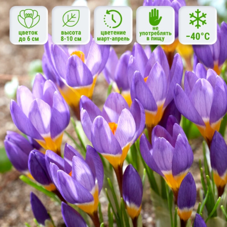 Крокус ботанический Сайбери Триколор (Sieberi Tricolor) отличается яркой и контрастной окраской, один из лучших весенних луковичных цветов. Идеальны ботанические крокусы в качестве горшечного растения, являются отличным живым подарком для женщин на 8 марта.