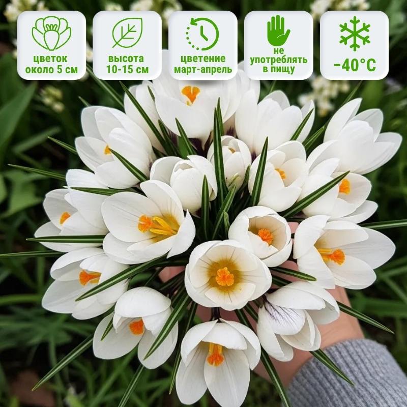 Крупноцветковый крокус Jeanne D'Arc (Жанна д`Арк) — один из лучших сортов белого крокуса, как только сходит снег он тут же начинает украшать Ваш сад, принося нотки весны вместе с ландышами. Идеальны крупноцветковые крокусы Жанна Дарк в качестве горшечного растения, являются отличным живым подарком для женщин на 8 марта.