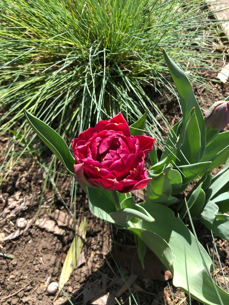 Шикарный пионовидный тюльпан Анкл Том имеет крупные одиночные цветы темно-пурпурного цвета. Махровый цветок имеет округлые лепестки, сияющие на солнце своей отполированной поверхностью. Бокал 6-7 см, диаметр до 10 см. Цветение тюльпана Дядя Том обычно длится около 2-3 недель, но при благоприятных условиях и интервальной посадке это может продолжаться даже дольше. Первые бутоны появляются в середине весны, обычно апреле-мае, в зависимости от климатических условий проживания. Сорт невысок, высота стеблей около 35-45 см.Особенность сорта: темно-пурпурный цвет на махровом цветке выглядит броско и привлекательно. Им можно любоваться в саду, а можно срезать несколько тугих ножек и поставить в вазу. Старайтесь это делать утром или вечером, когда на улице наиболее прохладно. Также следите за тем, чтобы бутон был закрытый, так цветы дольше простоят.